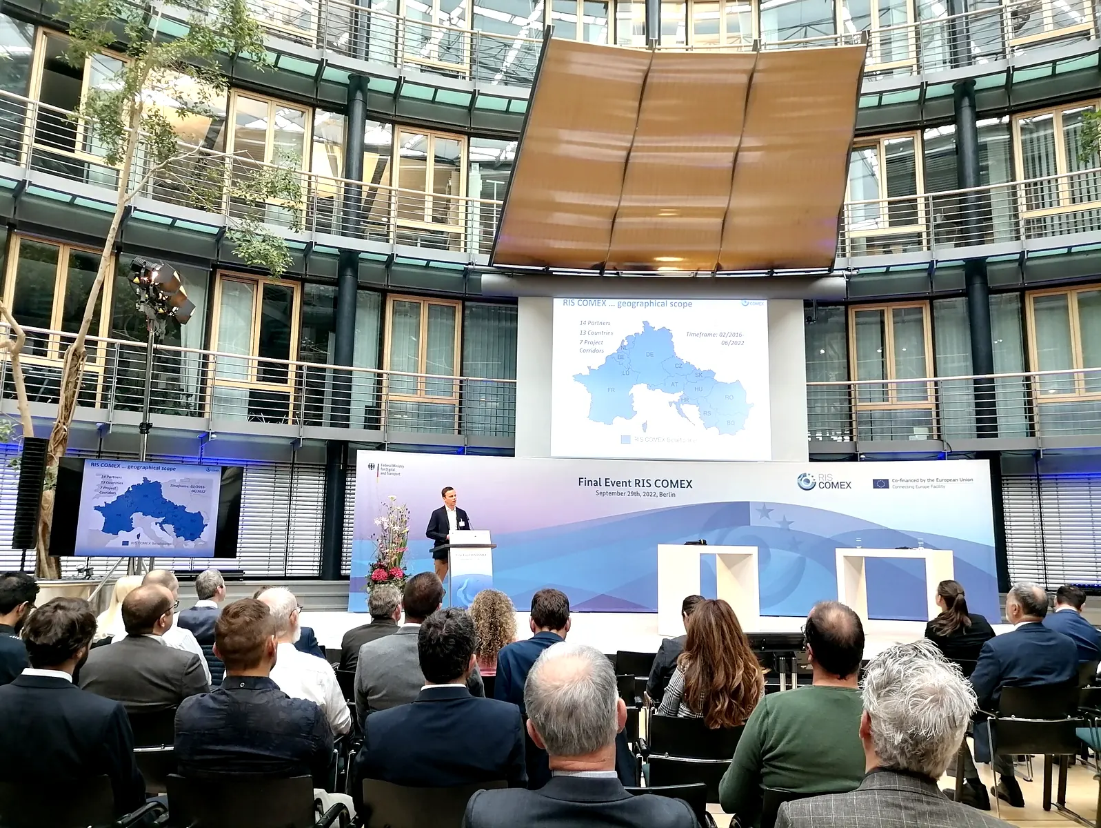 The international platform with continuous access to static and dynamic information on European and inland waterways has been developed and implemented within the RIS COMEX project, where the Bulgarian Ports Infrastructure Company is the Bulgarian beneficiary. The RIS COMEX project was financed by the Connecting Europe Mechanism and aims at the introduction of sustainable functioning of the river information services at Corridor level. The project implementation is expected to result in a better planning of the transportation on the inland waterways, reduction of the waiting and travel times, effective performance of inland navigation and mitigation of the administrative barriers. The final event under this project took place on 29.09.2022 in Berlin, Germany.